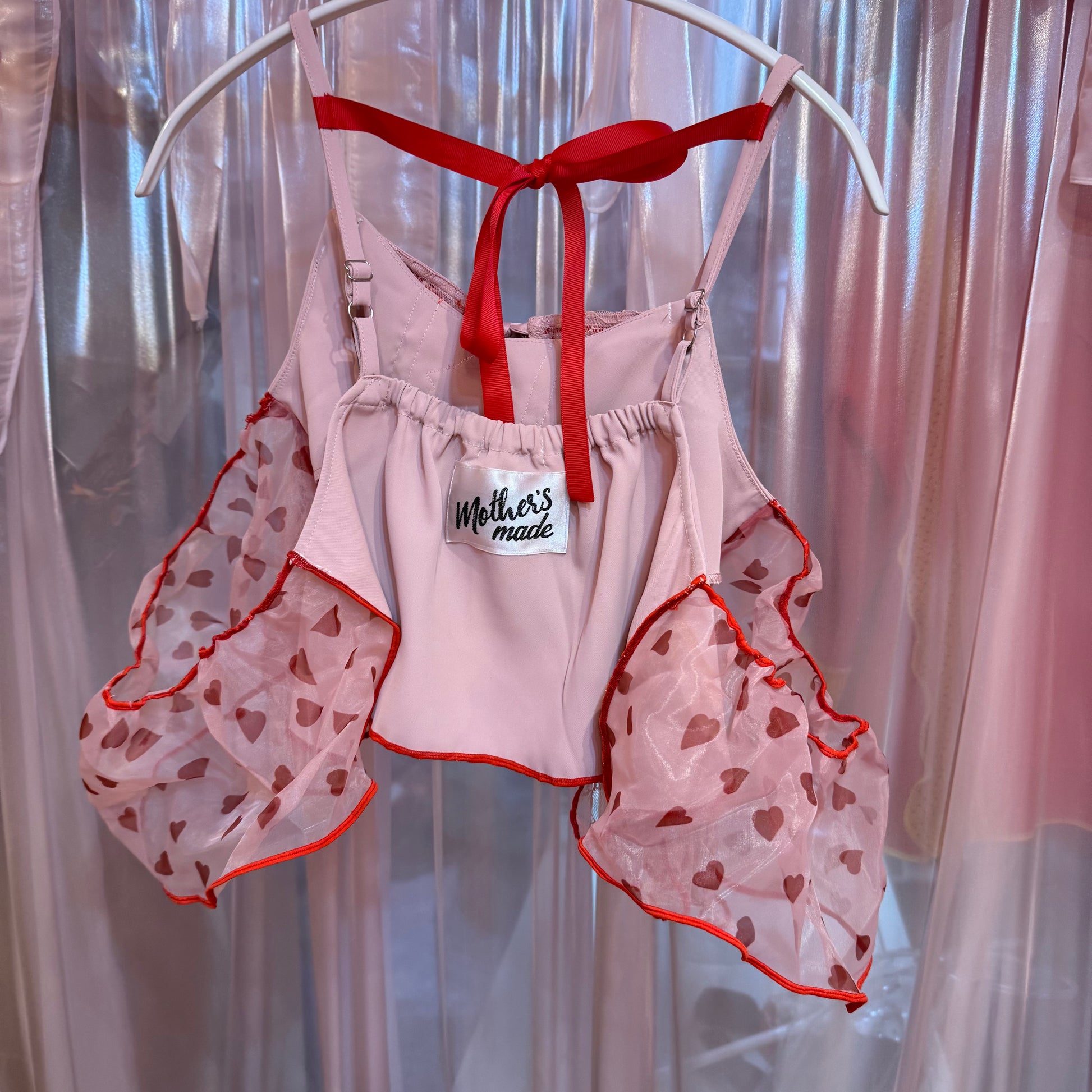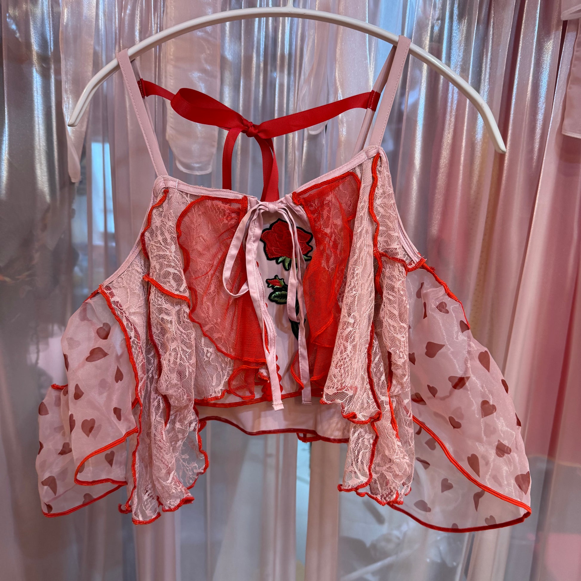 ピンク薔薇刺繍レースキャミソール