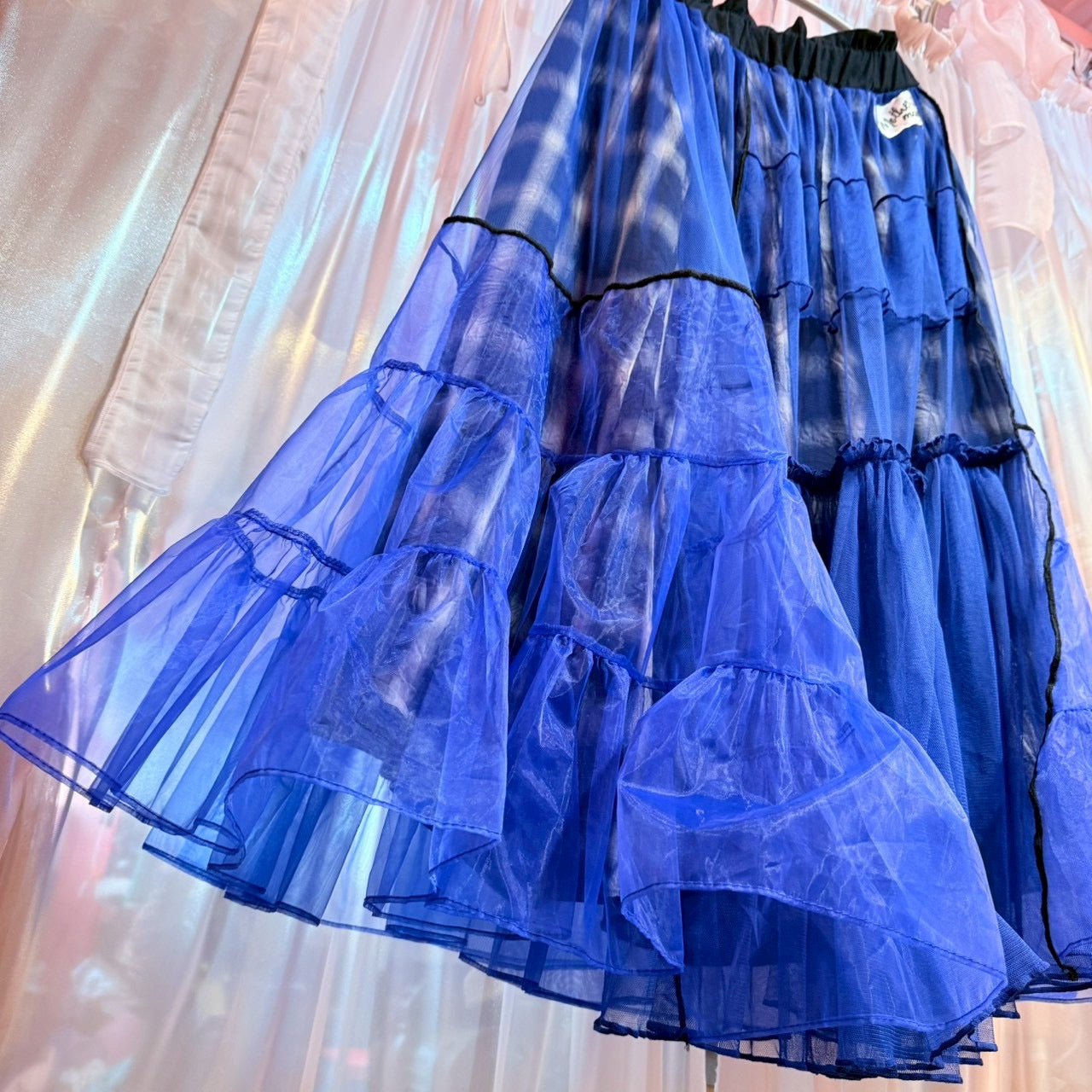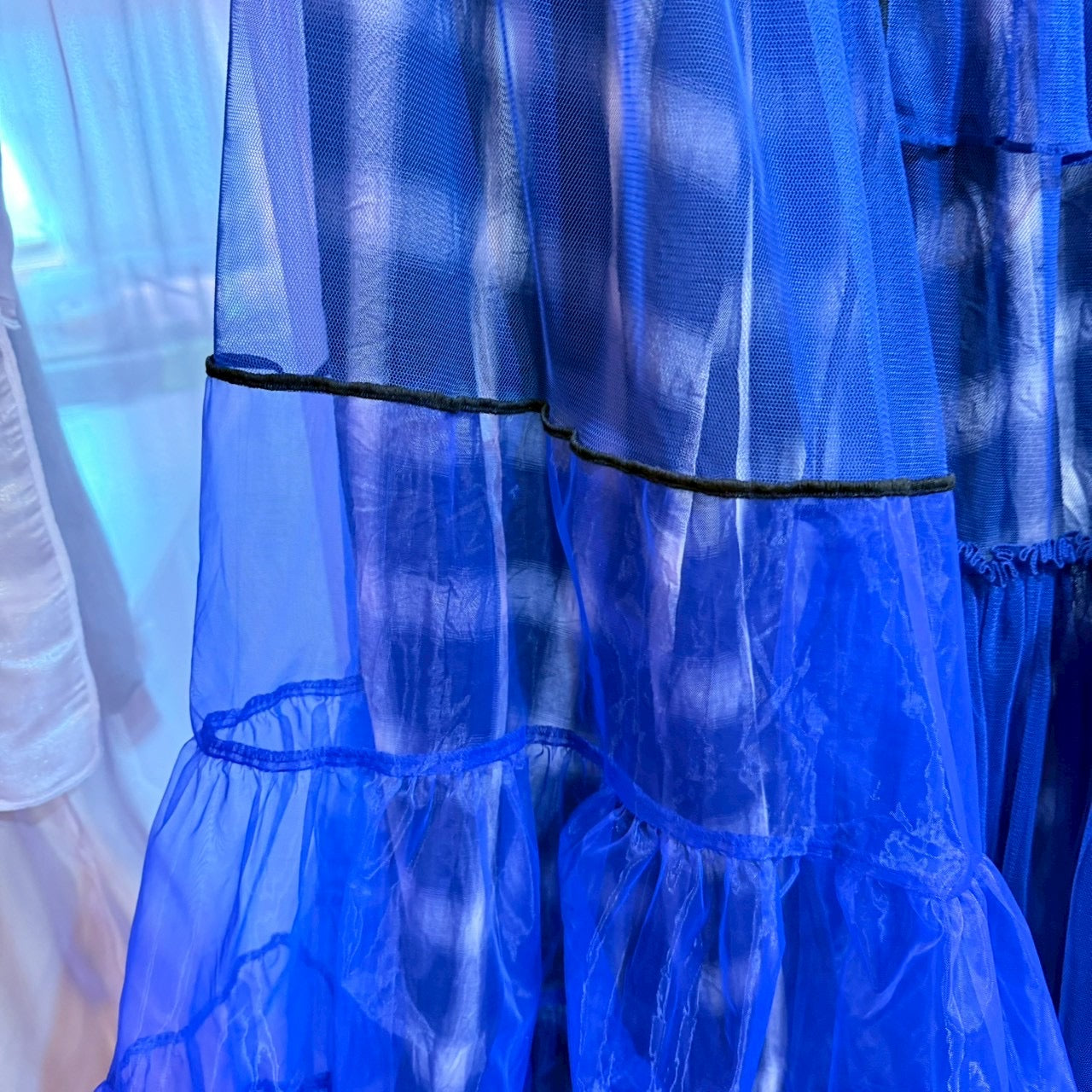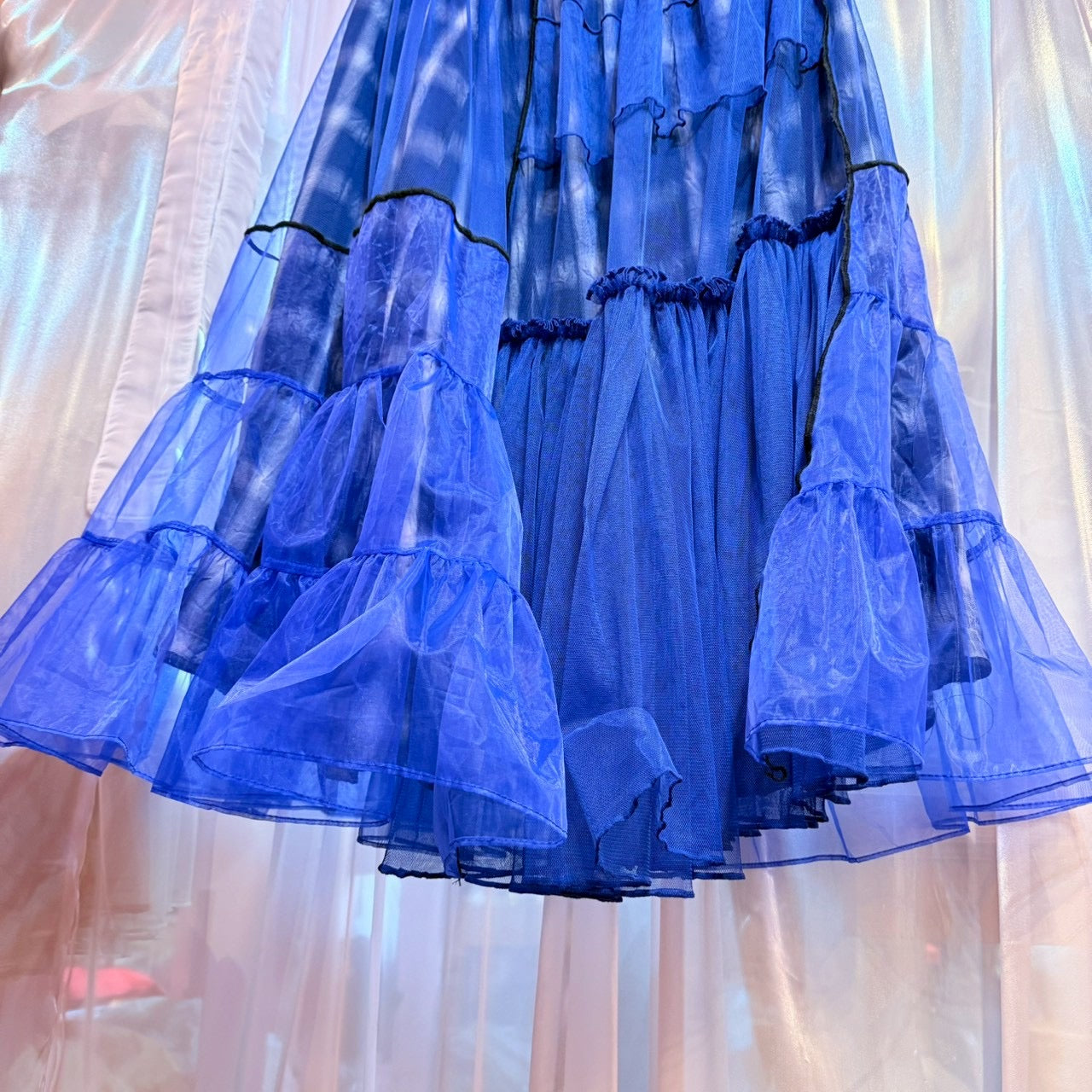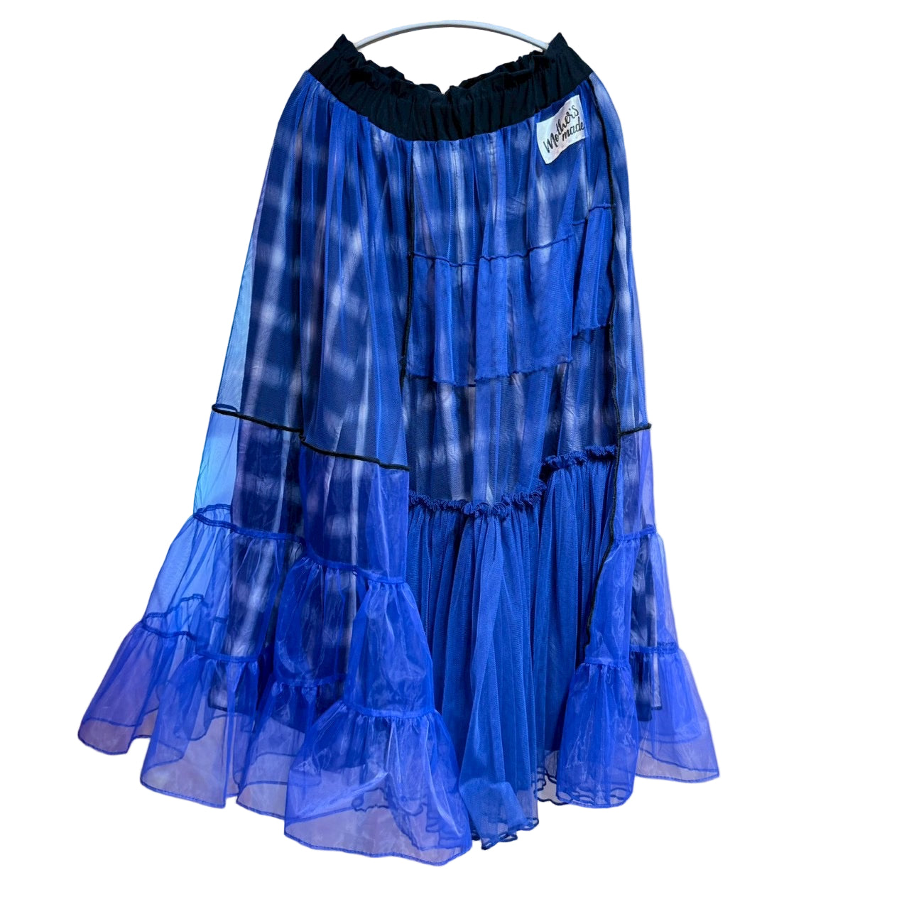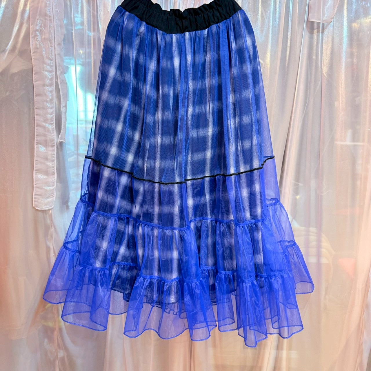 青いチェック柄のチュールスカート