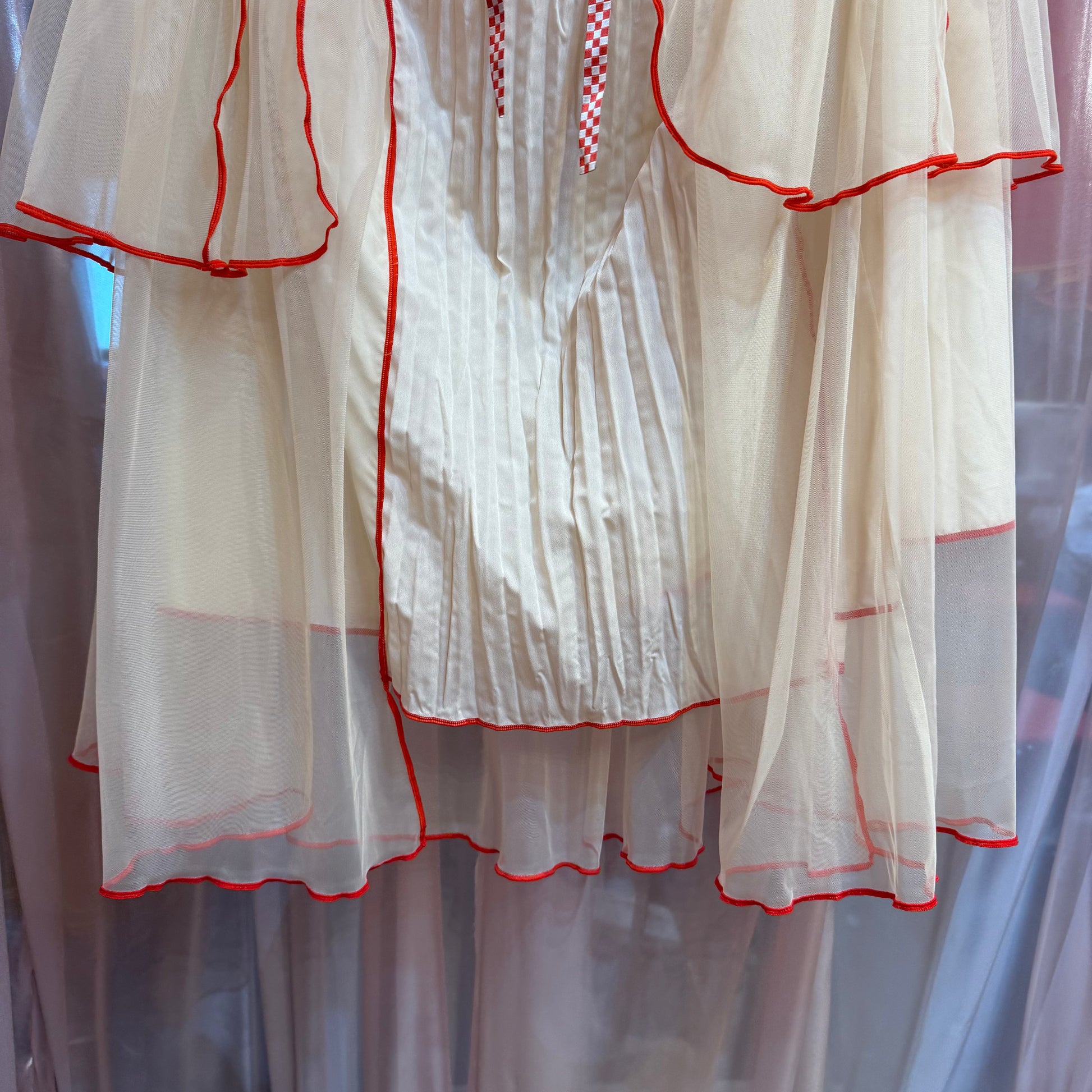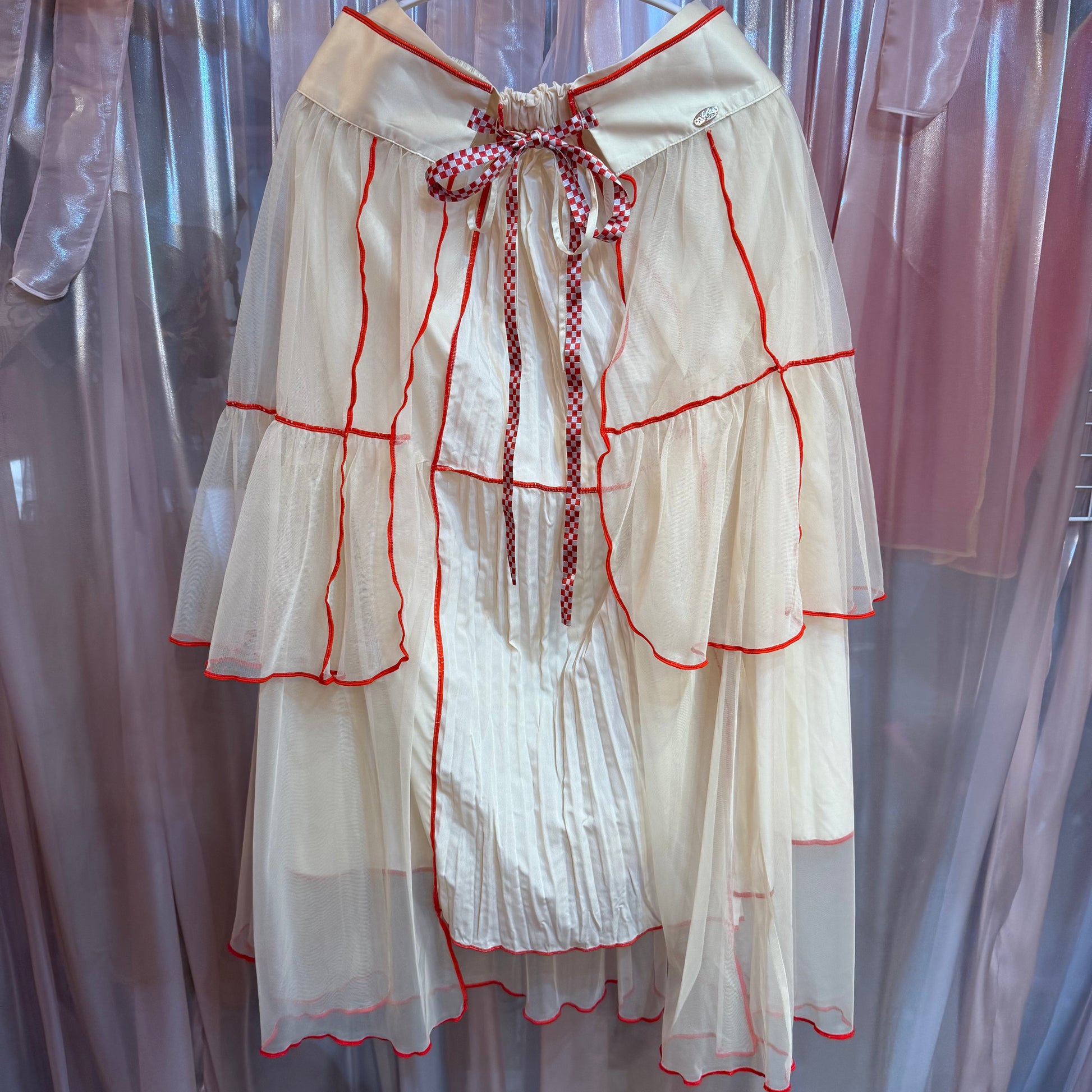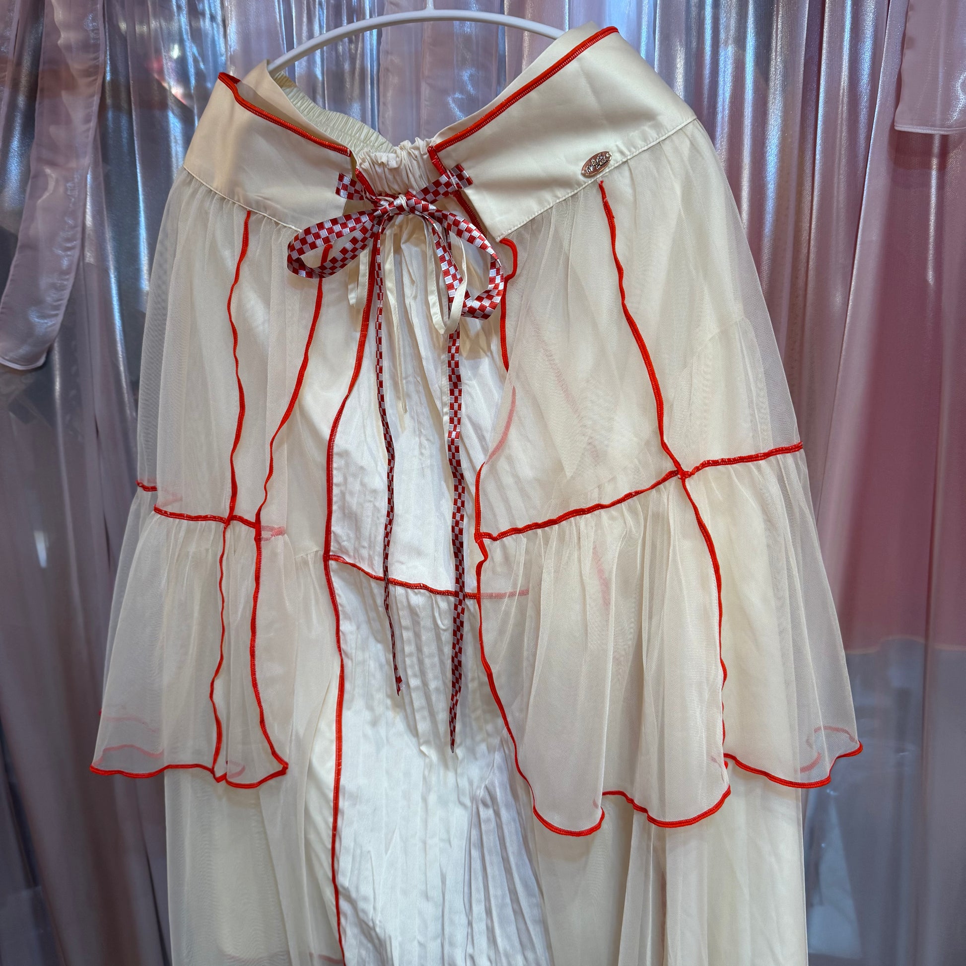 レッドチェックリボンチュールスカート