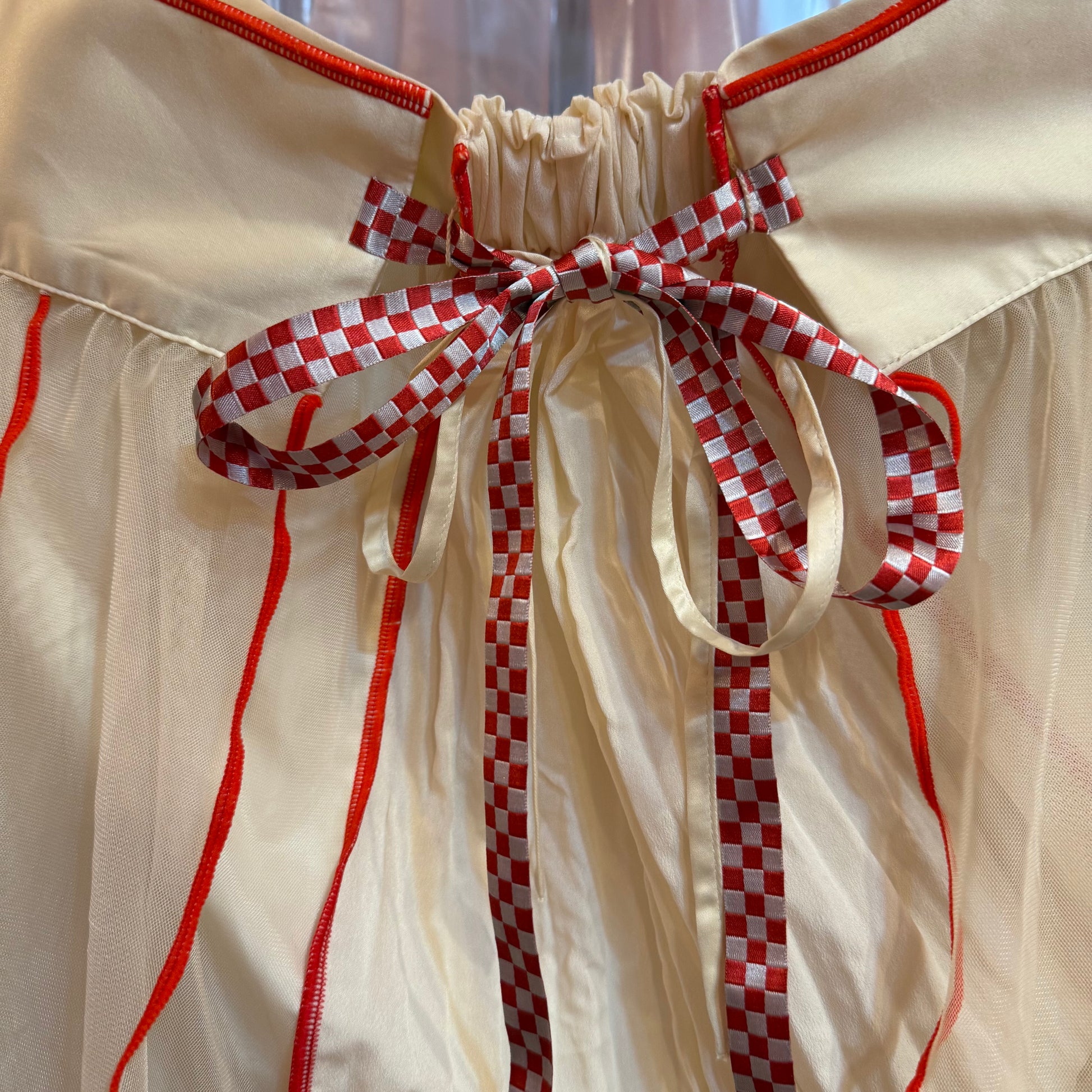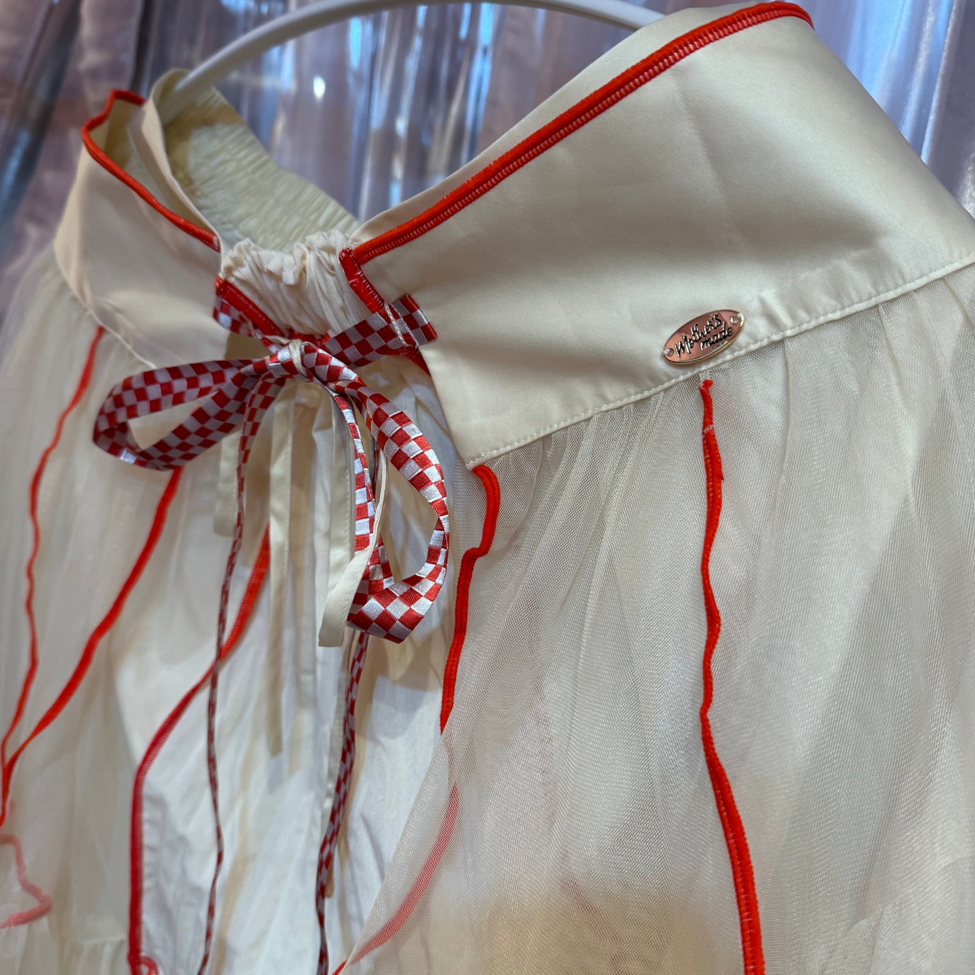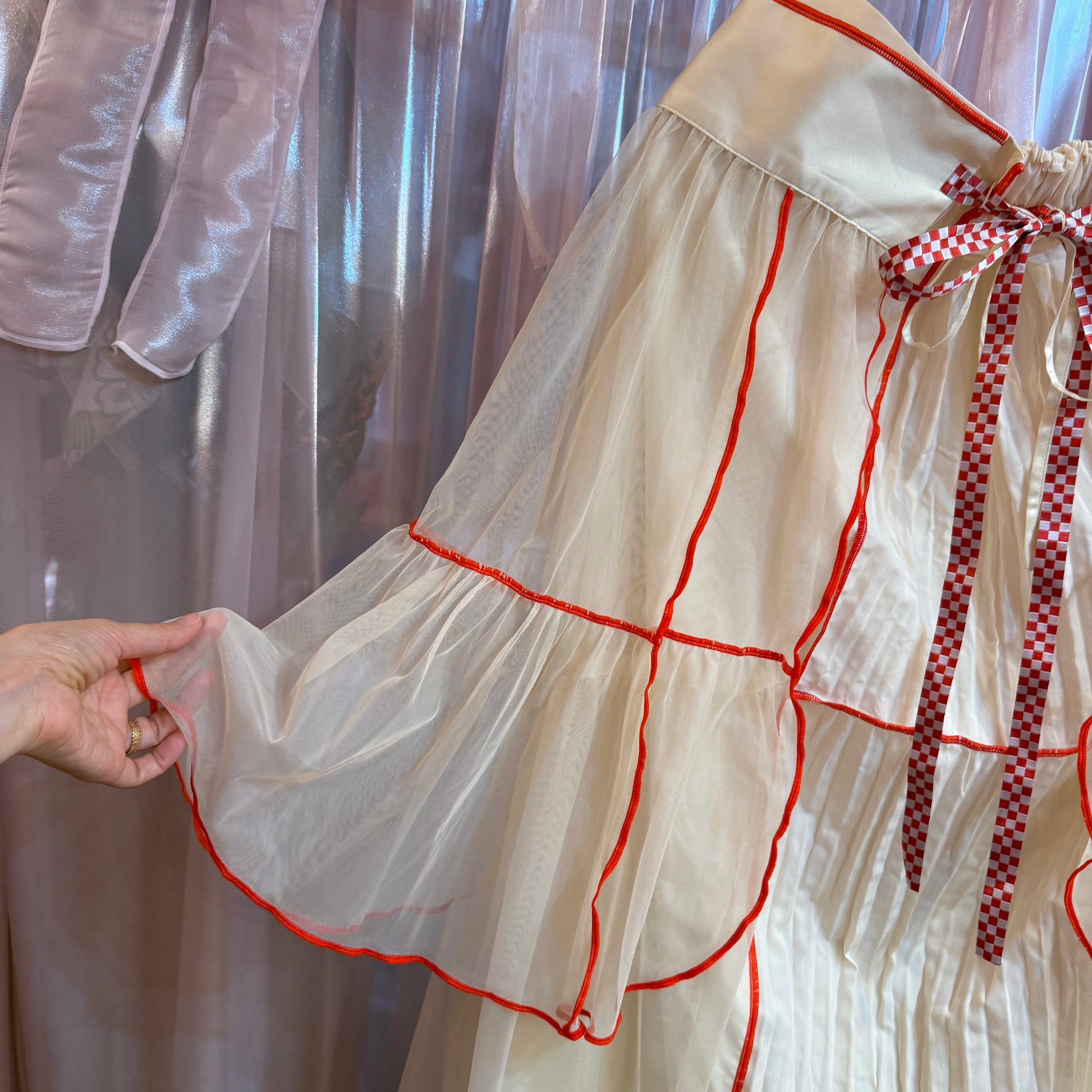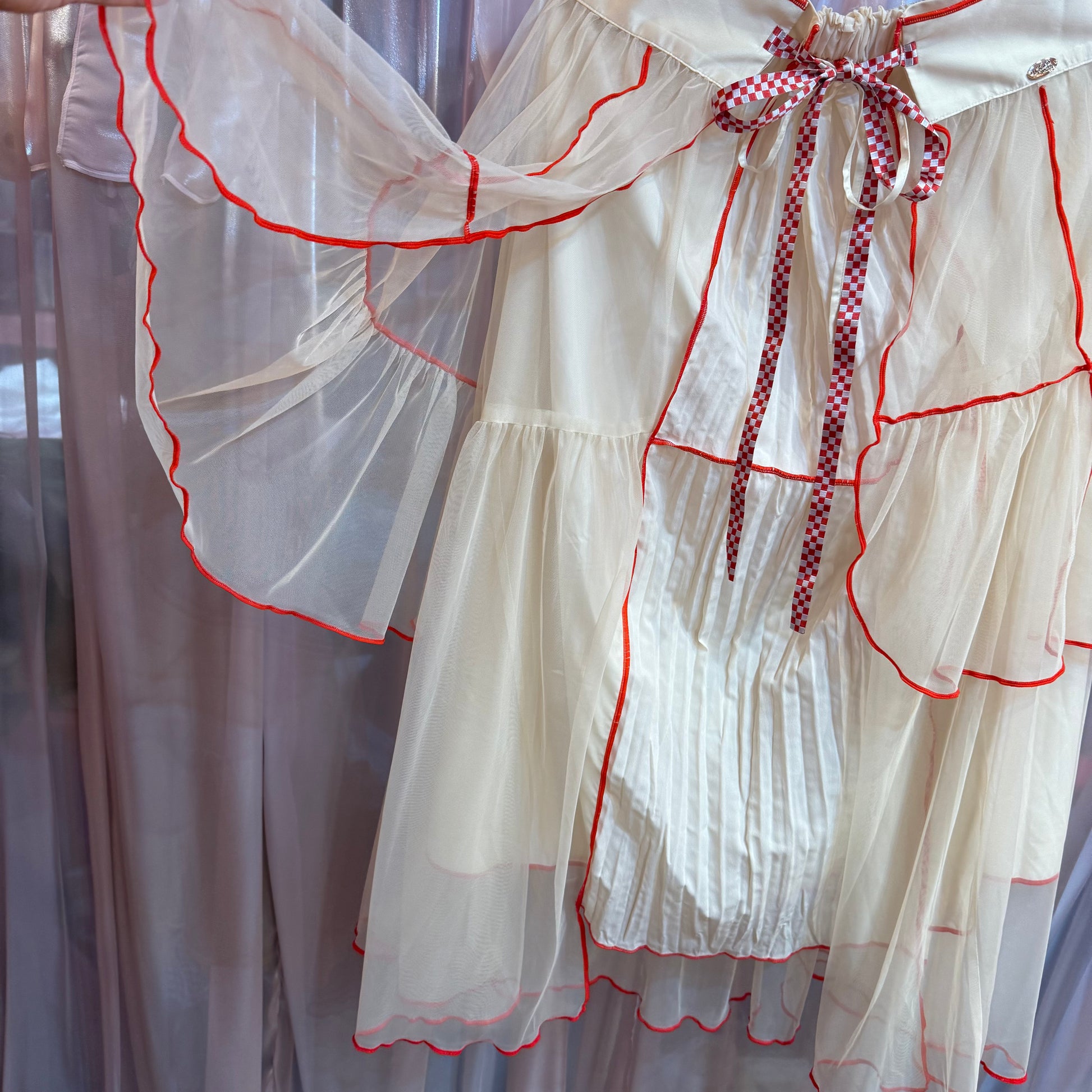 レッドチェックリボンチュールスカート